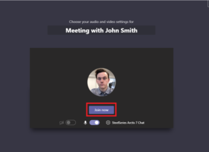 1. Select the “Meet Now” button to start an unscheduled meeting.